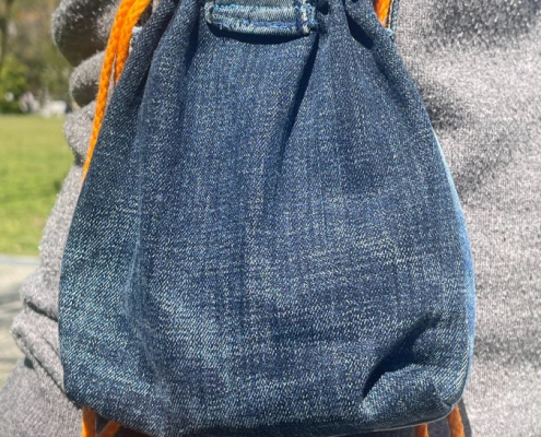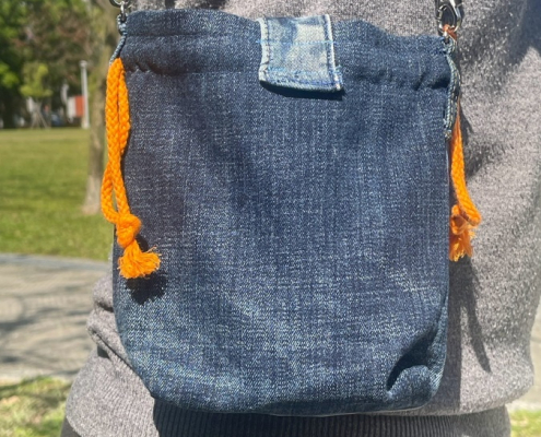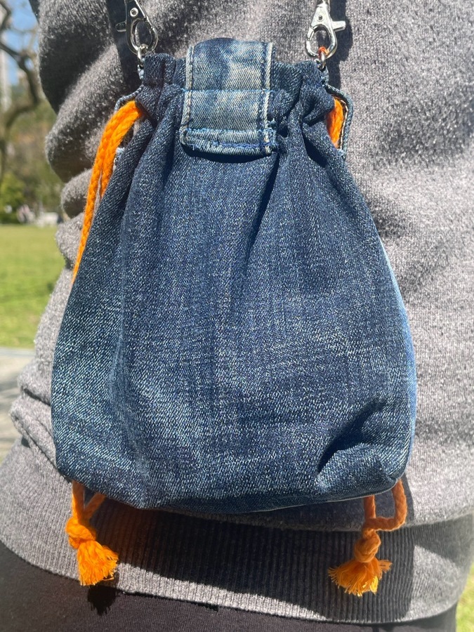 以回收丹寧布為基材,透過巧思手做工序,賦予丹寧布全新生命,製作成獨特風格的產品。因材料來源關係,每個包都是獨一無二的存在。內裡棉布為全新品。