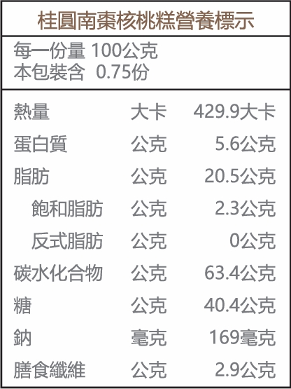2.本產品含有核桃、大豆製品過敏物質。