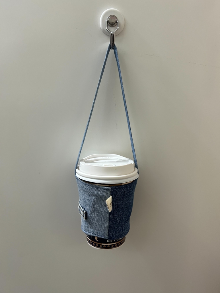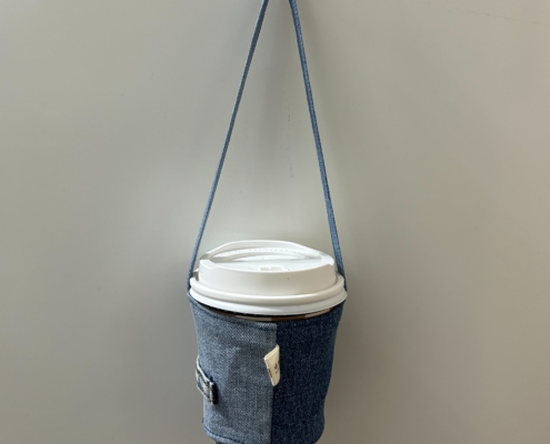 用回收牛仔褲改造而成的環保隨行杯袋,質感獨特、耐用有型